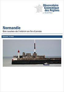 L’emploi salarié repart à la hausse au dernier trimestre en Normandie (+0,3% vs T3 2016 / +2 103 postes), porté principalement par l’intérim (+2 169 postes au T4 2016). L’intérim vient alimenter les besoins en main d’œuvre de l’industrie (effectifs intérimaire du secteur en hausse de +5,3% vs T3 2016 / source : Direccte Normandie). Localement, les effectifs intérimaires sont en forte progression dans l’Orne (+9,8% vs T3 2016) et en Seine-Maritime (+7,1%). Dans la Manche, l’intérim augmente moins rapidement (+3,2% vs T3 2016 / +0,2% sur 12 mois), mais l’emploi industriel signe une nouveau trimestre de progression (+0,2% vs T3 2016 / +1,0% sur 12 mois), grâce à la bonne tenue du secteur automobile.
